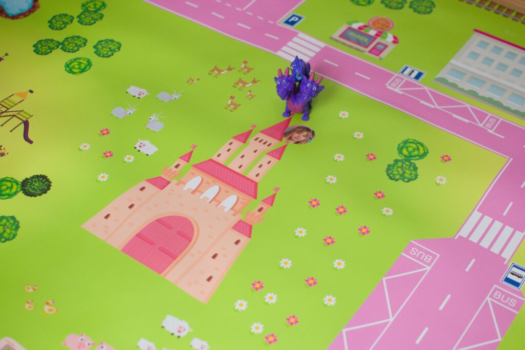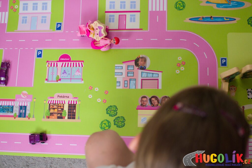 Naše personalizovaná podložka Hugolík není jen pro kluky. Pro holky jsme vytvořili verzi, kde není nouze o růžovou barvu a místo hasičů, policistů a podobných klučičích záležitostí najdete na holčičí podložce zámek, více zvířátek, obchodů a dalších věcí, které holky baví 😉