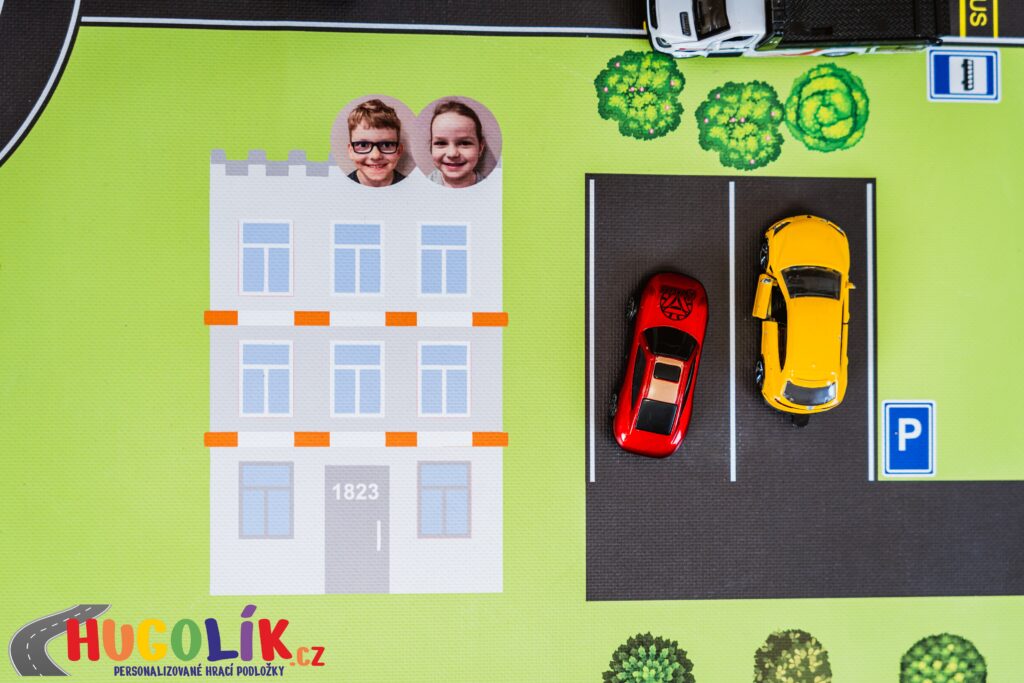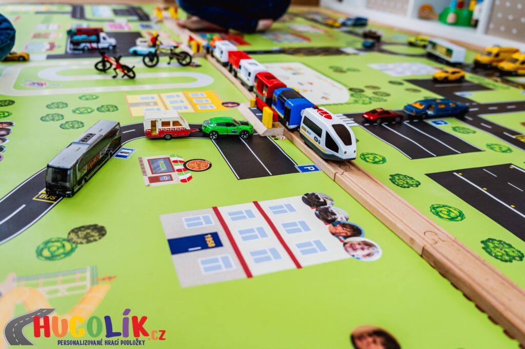 Na naší podložce můžete mít u jednotlivých domečků fotografie rodiny a kamarádů, tím dostane podložka osobní charakter a Vaše děti budou jezdit k jejich babičce, taťkovi nebo kamarádovi, kterého dobře znají.