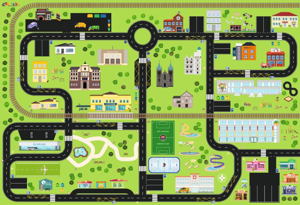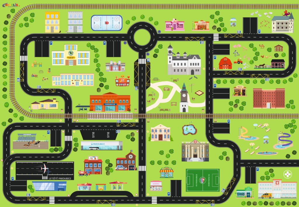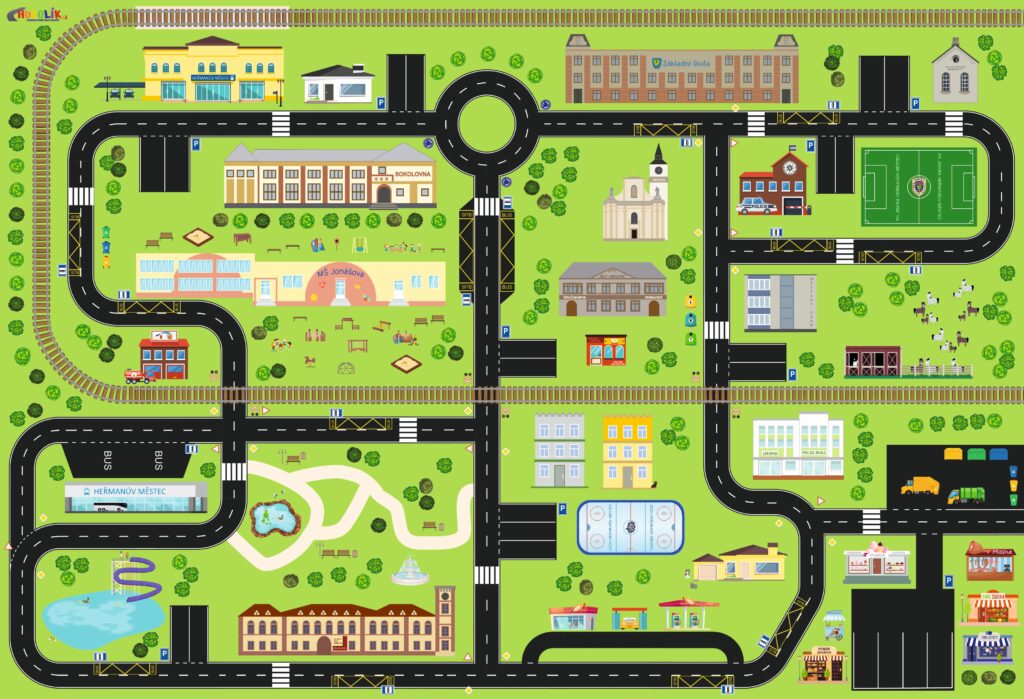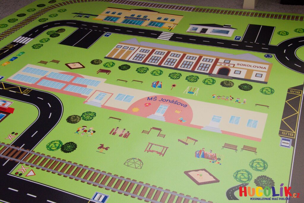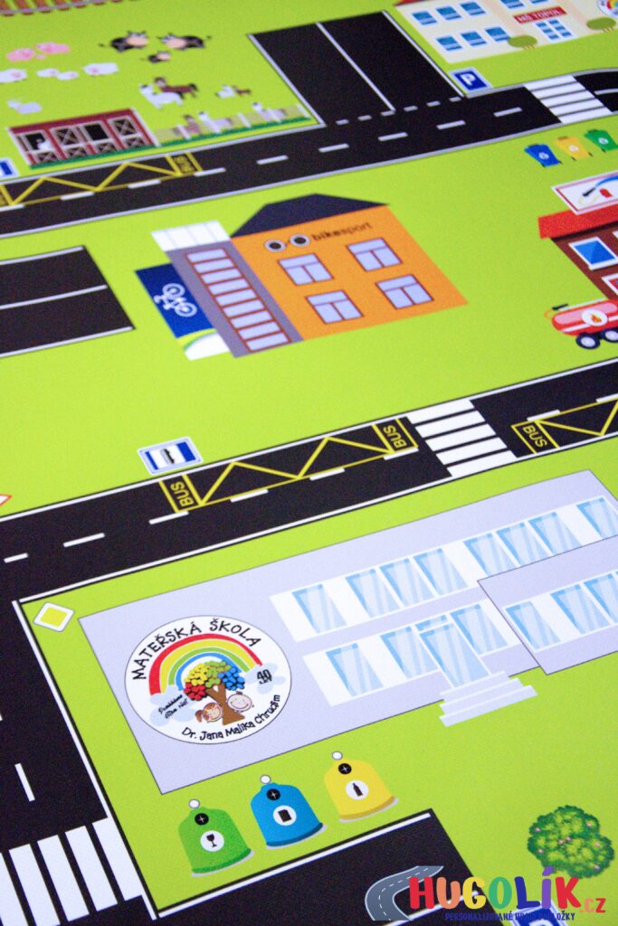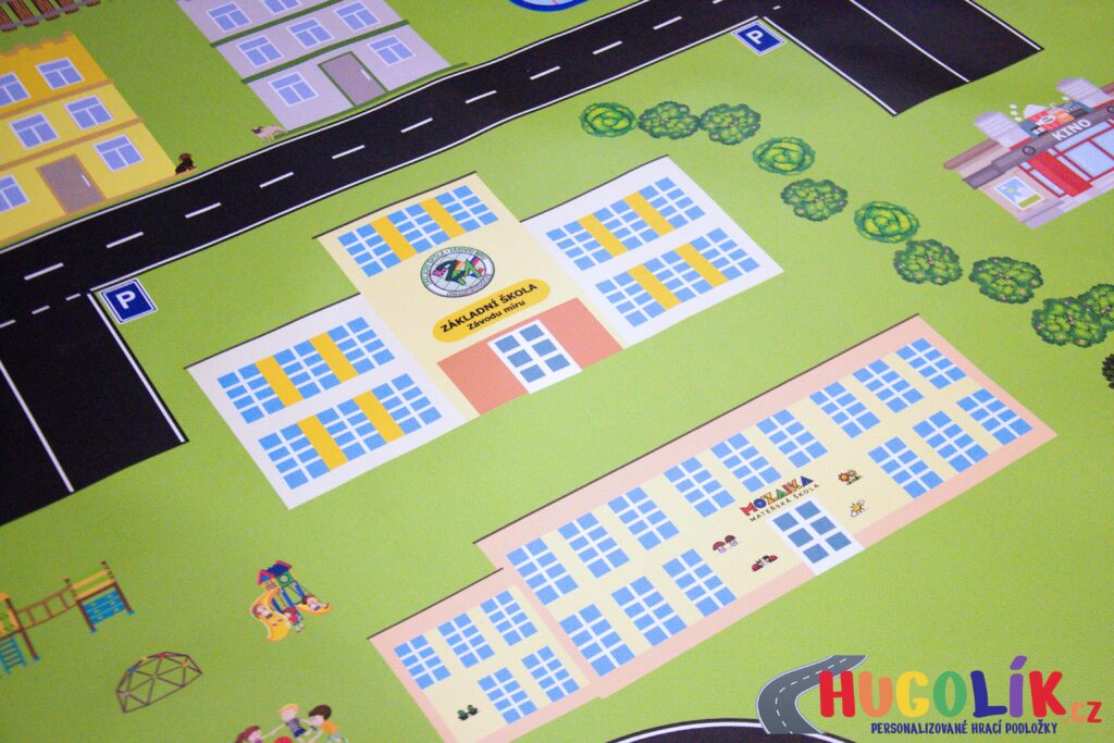 Speciální nabídka hracích podložek byla navržena s ohledem na potřeby školního a předškolního prostředí. Na každé podložce najdete důležité objekty města, ve kterém sídlí Vaše školka nebo škola, včetně charakteristických budov, památek a dalších míst, které jsou dětem blízké a známé.