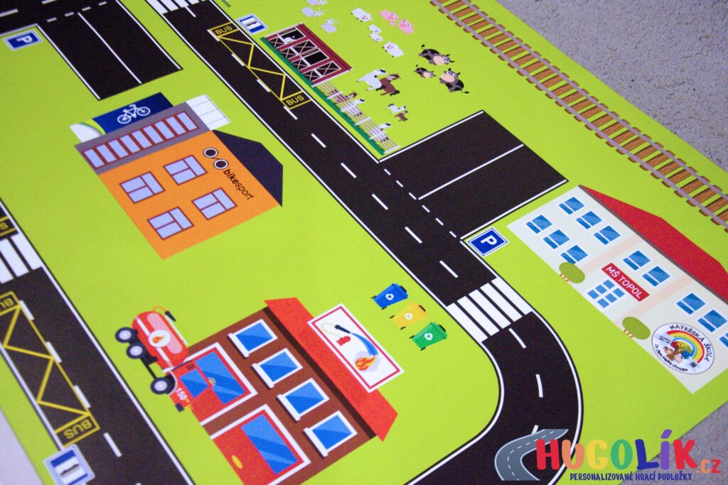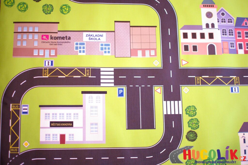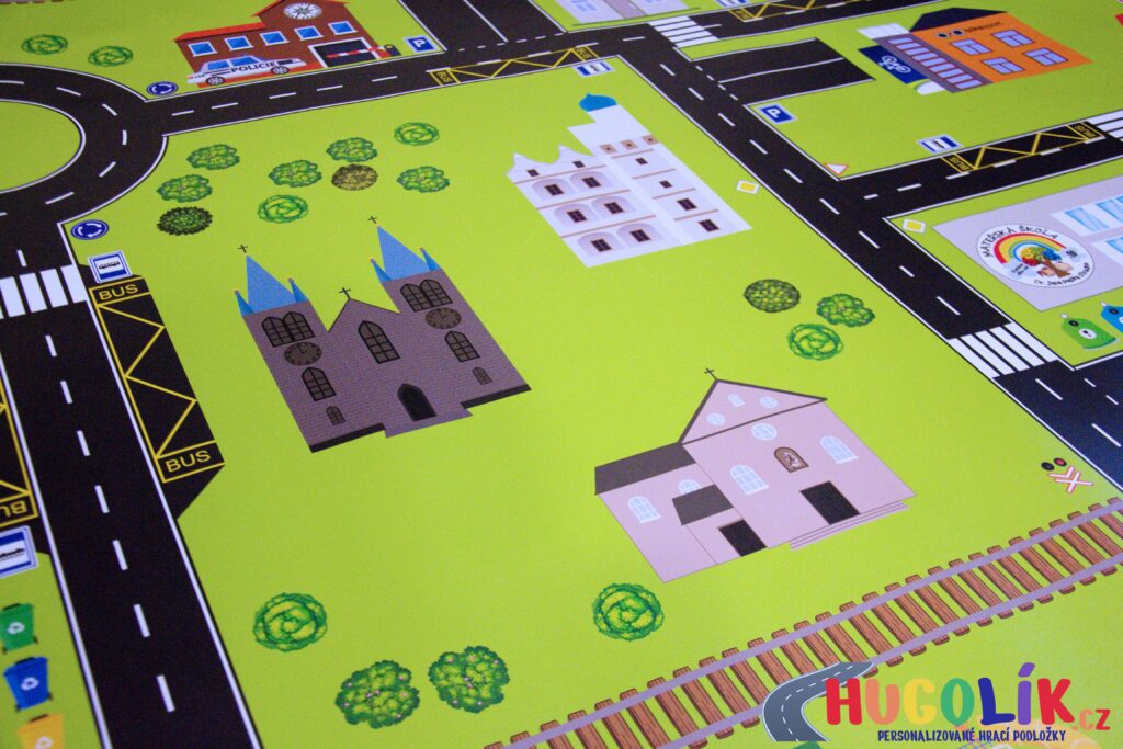 Speciální nabídka hracích podložek byla navržena s ohledem na potřeby školního a předškolního prostředí. Na každé podložce najdete důležité objekty města, ve kterém sídlí Vaše školka nebo škola, včetně charakteristických budov, památek a dalších míst, které jsou dětem blízké a známé.
